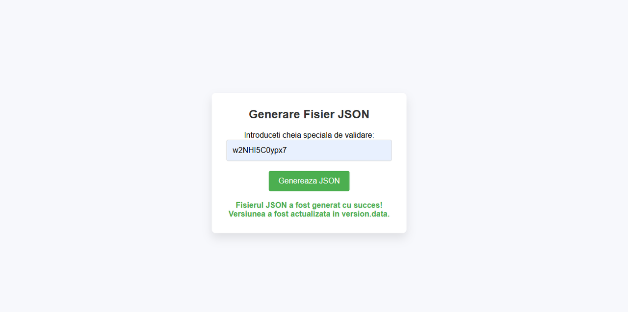 - Panou web pentru generarea update-ului